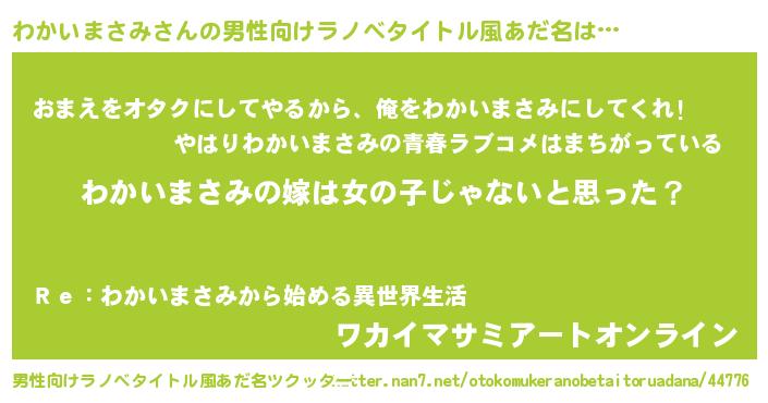 | ポケモン風あだ名 | 『ヒワカイマサミ』『ワックウザ』 |