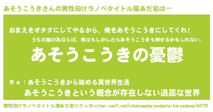 | ヘコむあだ名 | 『あそにー』『あそうこうき(小並感)』 |