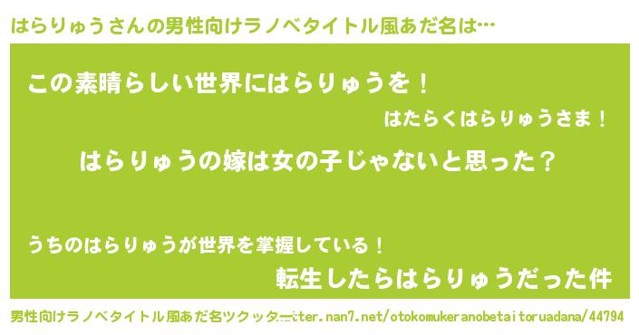 | 女子向けラノベタイトル風あだ名 | 『はらりゅう様がみてる』 |