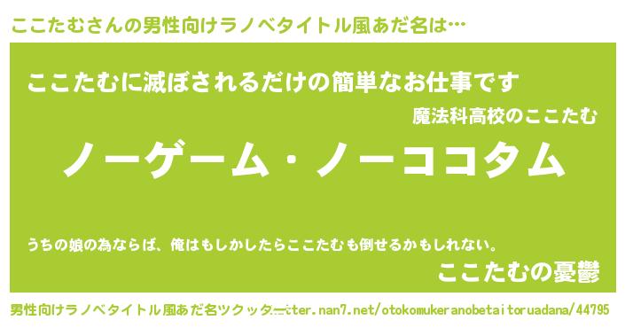 | ヒーロー風カッコイイあだ名 | 『慈愛の使者ここたむ』『ネオココタム』 |