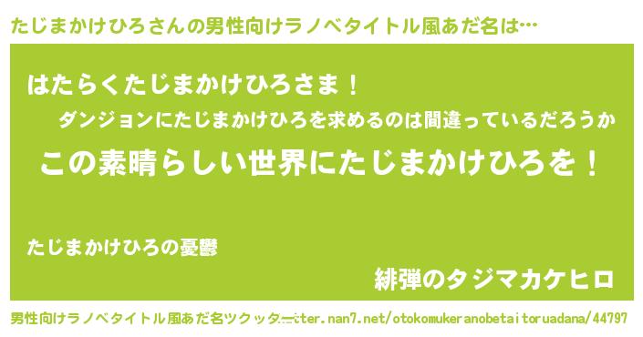 | 意味不明あだ名 | 『住所不定無職たじまかけひろ(53歳)』 |