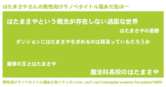 | 女子向けラノベタイトル風あだ名 | 『はたまさやは平凡を望む』 |