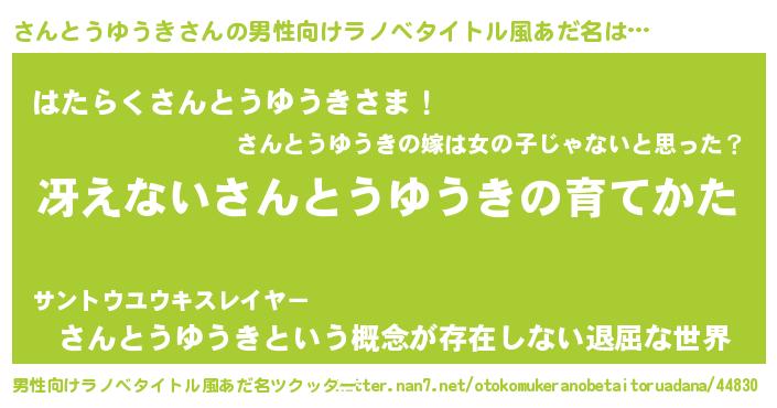 | ヘコむあだ名 | 『さんとうゆうき(笑)』『さんぷりん』 |