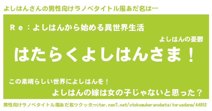 | ポケモン風あだ名 | 『ヨシゴンZ』『ヨシセウス』 |