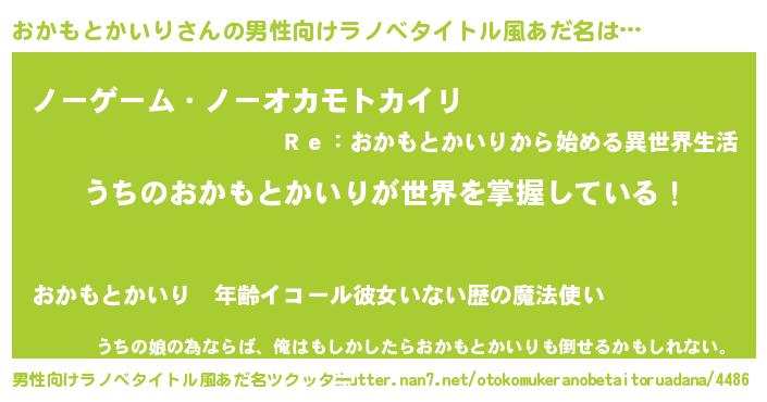 | ヒーロー風カッコイイあだ名 | 『慈愛の使者おかもとかいり』 |