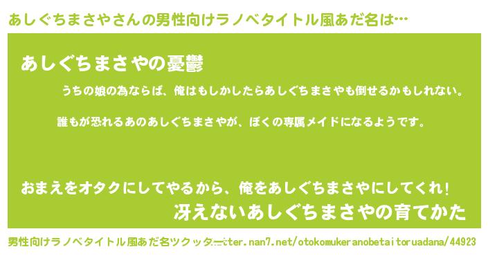 | 意味不明あだ名 | 『永久保存あしぐちまさや』 |