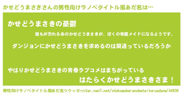 | 女子向けラノベタイトル風あだ名 | 『かせどうまさきは平凡を望む』 |