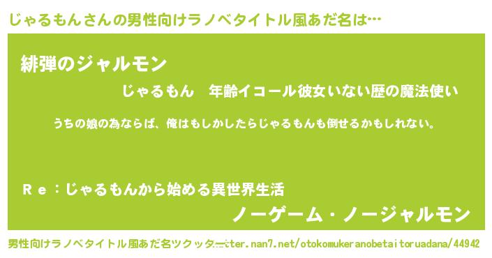 じゃるもんさんの男性向けラノベタイトル風あだ名をツクッター!
