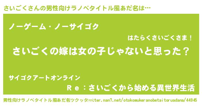 | 女子向けラノベタイトル風あだ名 | 『さいごく様がみてる』 |