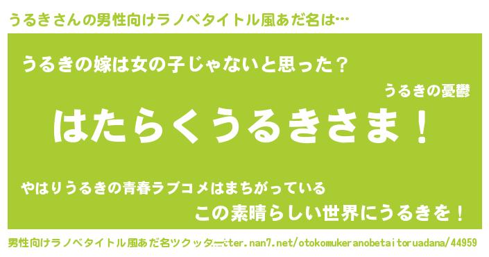 | 意味不明あだ名 | 『とにかく怪しいうるき』 |