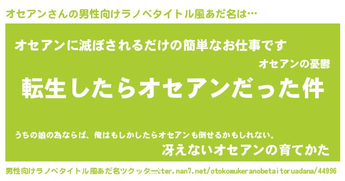 | 胡散臭い通販商品みたいなあだ名 | 『モテモテ間違いなしブレスレット…その名も「オセアン」』 |
