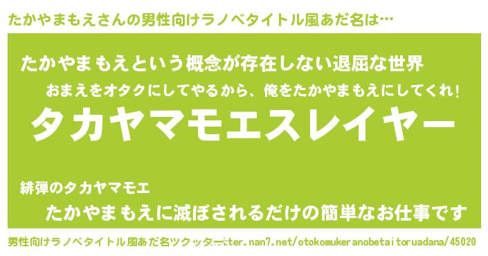 | 料理風あだ名 | 『たかやまもえごはん』 |