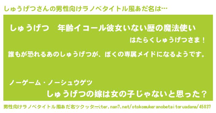 | 意味不明あだ名 | 『永久保存しゅうげつ』 |