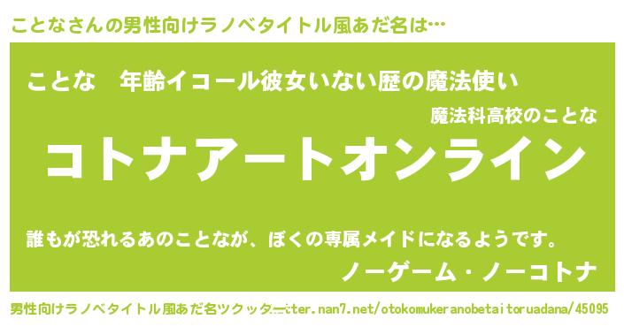 | 女子向けラノベタイトル風あだ名 | 『ことな姫と円卓の騎士』 |