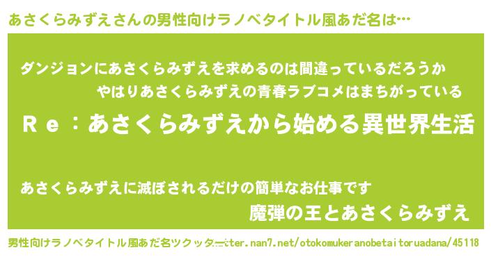 | 伝説のあだ名 | 『覚醒した僧侶あさくらみずえ』 |