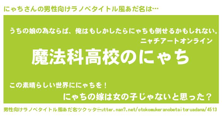 | 女子向けラノベタイトル風あだ名 | 『にゃちアンティーク』『にゃちの婚約者』 |