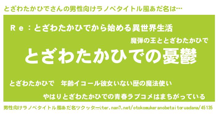| 女子向けラノベタイトル風あだ名 | 『とざわたかひで姫と円卓の騎士』 |