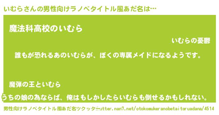 | 伝説のあだ名 | 『古文書に記された暗殺者いむら』 |