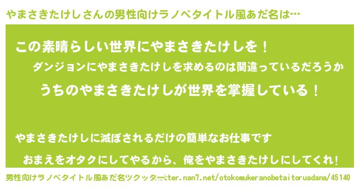 | 女子向けラノベタイトル風あだ名 | 『男装やまさきたけしの憂鬱な任務』 |