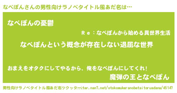 | ヒーロー風カッコイイあだ名 | 『ネオナベポン』『スーパーナベポン』 |