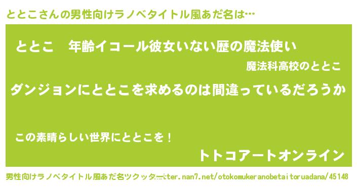 | 女子向けラノベタイトル風あだ名 | 『ととこは平凡を望む』 |