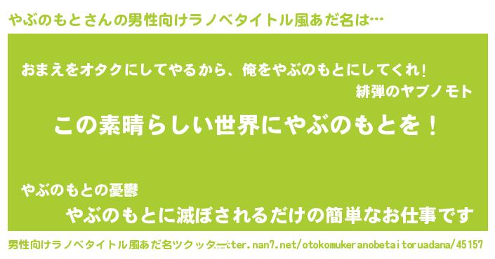 | 意味不明あだ名 | 『住所不定無職やぶのもと(77歳)』 |