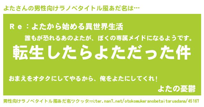 | ヘコむあだ名 | 『よたっふぃ~』『よた(笑)』 |