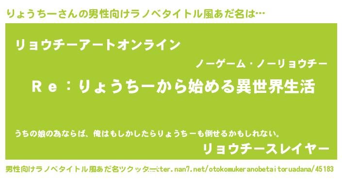 | 肩書あだ名 | 『りょうちー閣下』『りょうちー御曹司』 |