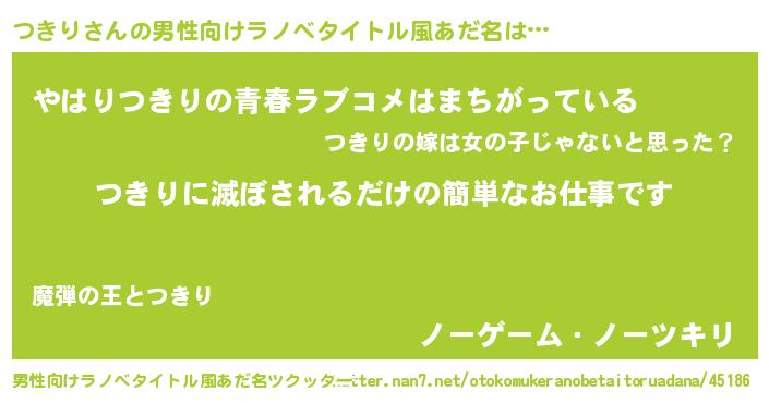 | 女子向けラノベタイトル風あだ名 | 『横柄つきりと宰相陛下』『つきり恋絵巻』 |