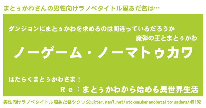 | 女子向けラノベタイトル風あだ名 | 『死神まとぅかわの再婚』 |