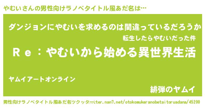 | 意味不明あだ名 | 『自称やむい』『とにかく怪しいやむい』 |