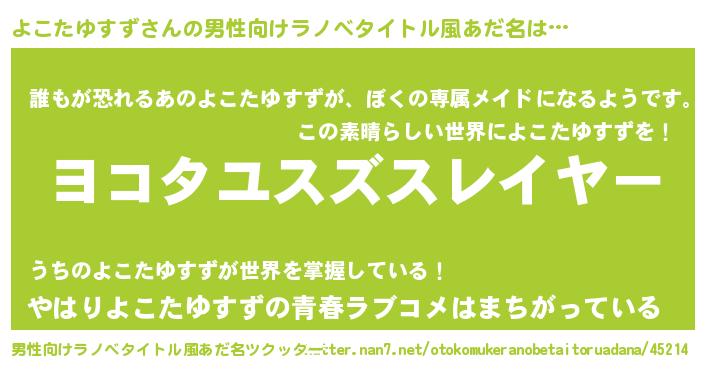 | ヒーロー風カッコイイあだ名 | 『ネオヨコタユスズ』『仮面ヨコダー』 |