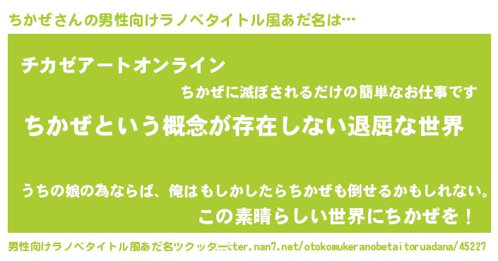 | 女子向けラノベタイトル風あだ名 | 『ちかぜの契約王妃』『ちかぜ伯爵の花嫁』 |