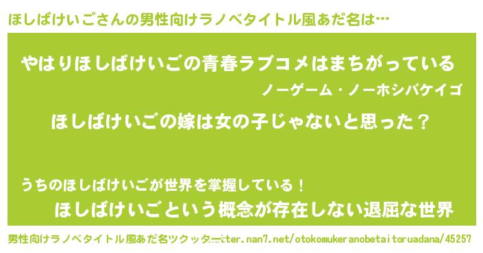 | 女子向けラノベタイトル風あだ名 | 『ほしばけいご様がみてる』 |