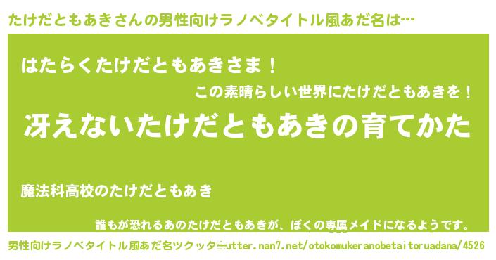 | 意味不明あだ名 | 『永久保存たけだともあき』 |
