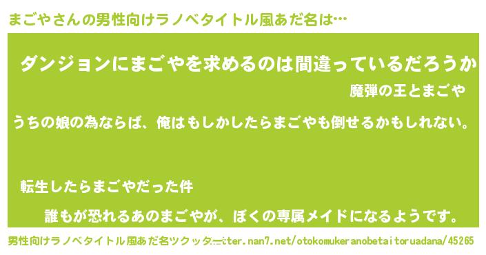 | ヒーロー風カッコイイあだ名 | 『ウルトラまごやマン』『暗黒騎士マゴ』 |