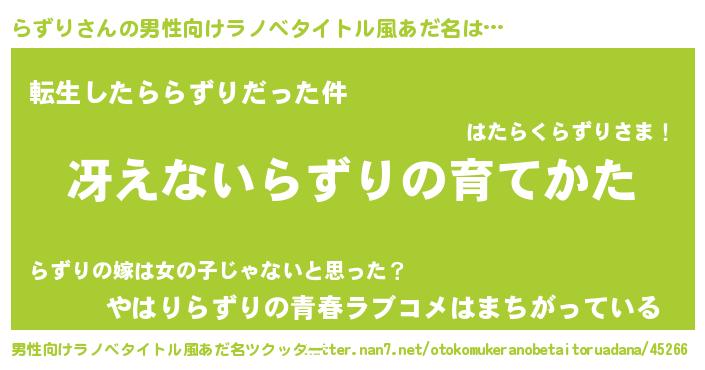 | 意味不明あだ名 | 『たけのこ科らずり属』『自称らずり』 |