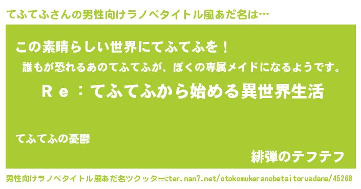 | 意味不明あだ名 | 『自称てふてふ』『永久保存てふてふ』 |