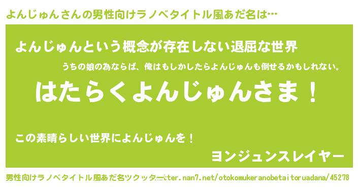 | 胡散臭い通販商品みたいなあだ名 | 『絶対に幸福をもたらす水素水…その名も「よんじゅん」』 |