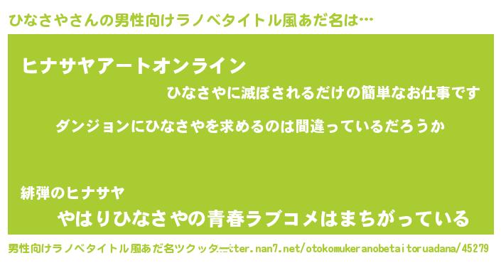 | 女子向けラノベタイトル風あだ名 | 『ひなさやは平凡を望む』 |