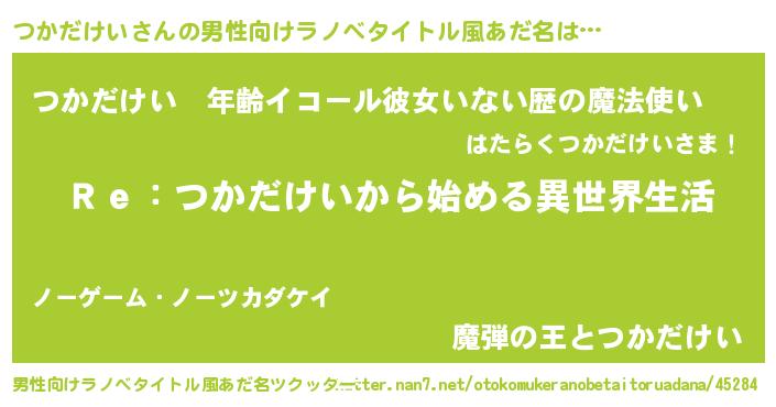 | 女子向けラノベタイトル風あだ名 | 『つかだけいストレイドッグス』 |