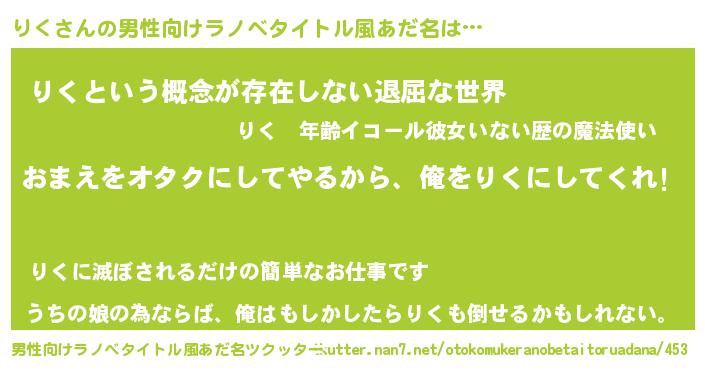 | ヘコむあだ名 | 『りく(爆)』『つくし』『りくもー』 |