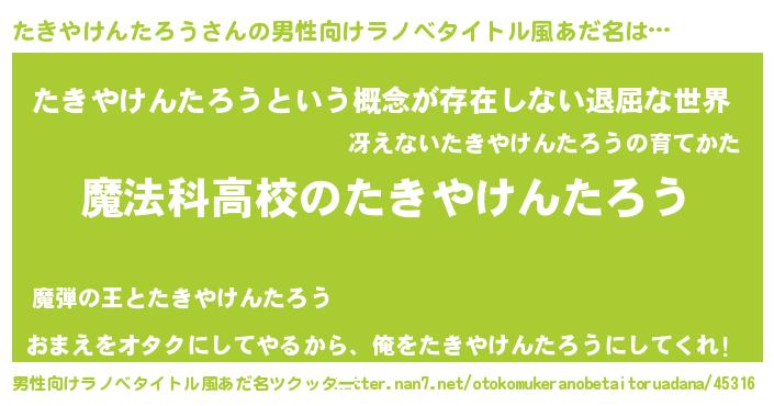 | 意味不明あだ名 | 『自称たきやけんたろう』 |