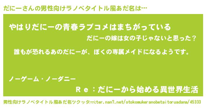 | 女子向けラノベタイトル風あだ名 | 『異世界でカフェだにーを開店しました。』 |