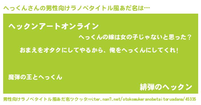 | 欧米人風あだ名 | 『ダニエルへっくん』『マイケルへっくん』 |