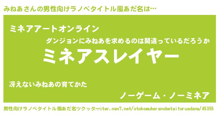 | 胡散臭い通販商品みたいなあだ名 | 『必ず成功するブレスレット…その名も「みねあ」』 |