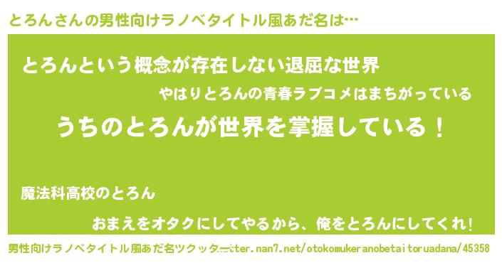 | 女子向けラノベタイトル風あだ名 | 『男装とろんの憂鬱な任務』 |