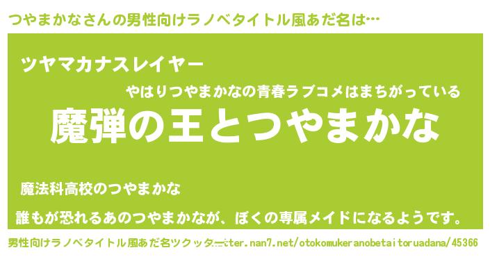 | 女子向けラノベタイトル風あだ名 | 『つやまかなが死なない童話 林檎のつやまかなの診療簿』 |