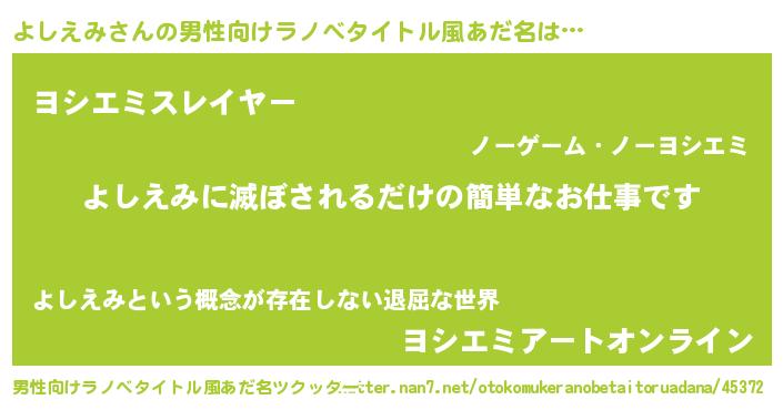 | ヘコむあだ名 | 『よしにー』『よしえみ(笑)』 |