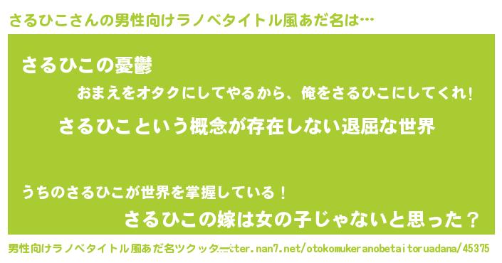 | 女子向けラノベタイトル風あだ名 | 『さるひこの契約王妃』 |